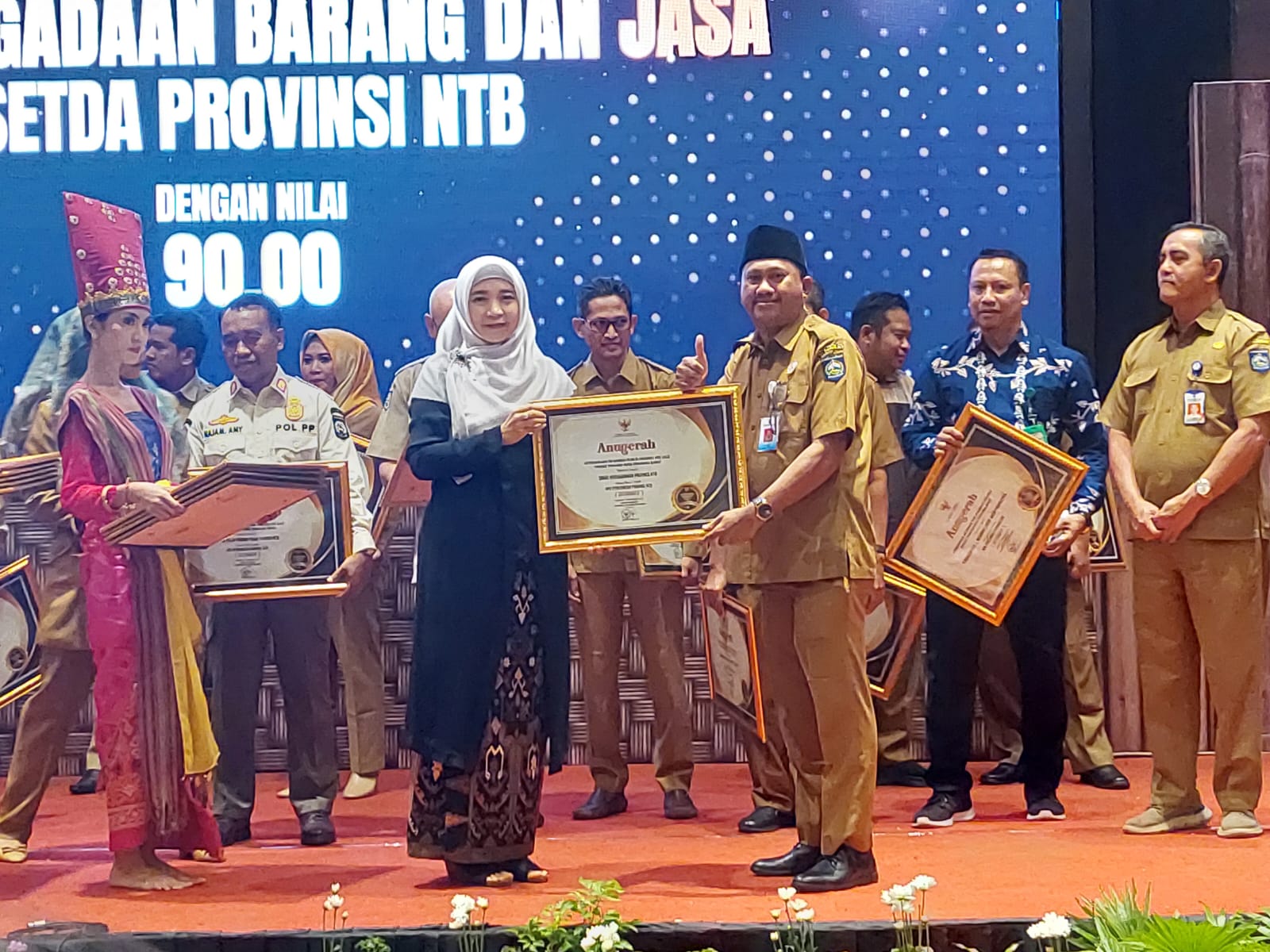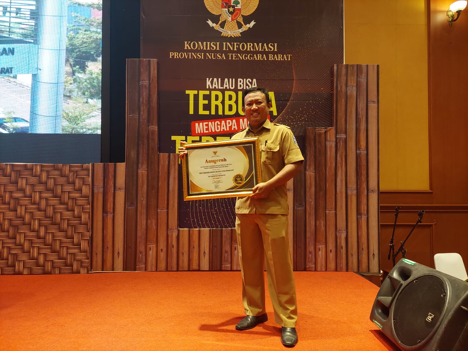 Pemberian penghargaan diserahkan langsung oleh Wagub Provinsi NTB Dr. Hj. Sitti Rohmi Djalilah kepada Kepala Biro Pengadaan Barang dan Jasa Setda Provinsi NTB Rony Yuhaeri, A.PI.,M. dan para Kepala OPD peraih penghargaan Badan Publik Informatif di Hotel Lombok Raya Mataram, Senin (19/12/2022).