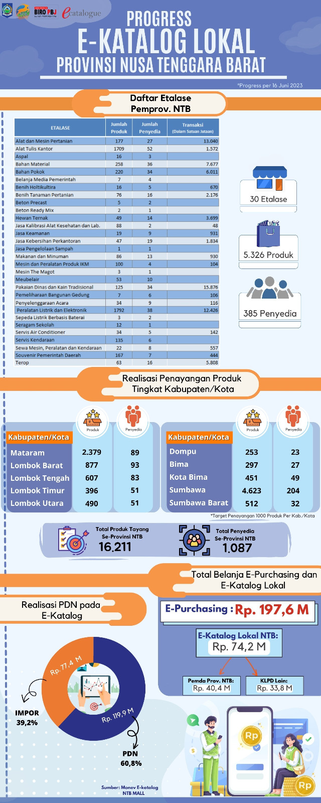 Progres E-Katalog Lokal Provinsi NTB Per-Tanggal 16 Juni 2023